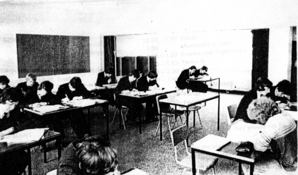 In the third year, top band pupils start a two-year preparation for English Literature 'O' Level, Syllabus A, while all other pupils begin a Mode 3 Literature course based on war, revolution and the alienated individual, a course which is integrated with the work of the History Department. In the summer term of the fourth year, top band pupils begin their English Language Continuous Assessment 'O' Level course which enables them to concentrate on writing in depth in their own time to the very best of their ability. All other pupils embark on a 16-F course at the same time, which also involves course work and offers the possibility of an 'O' Level grade. Every pupil, therefore, has the opportunity to leave school with two English qualifications.