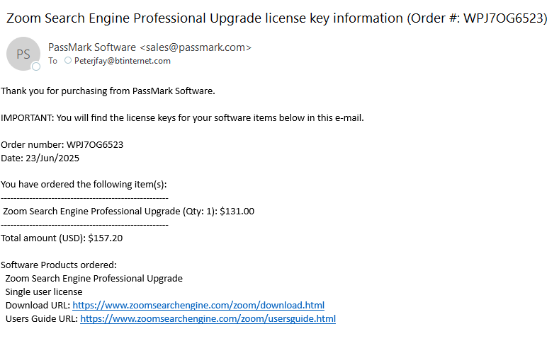 | 24/06/2025 | PassMark software | ZoomSearch v8 | Invoice | -120.38 | |