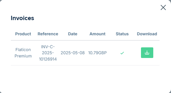 | 08/05/2025 | flaticon | flaticon subscription - 1 month | Invoice | -10.79 | |