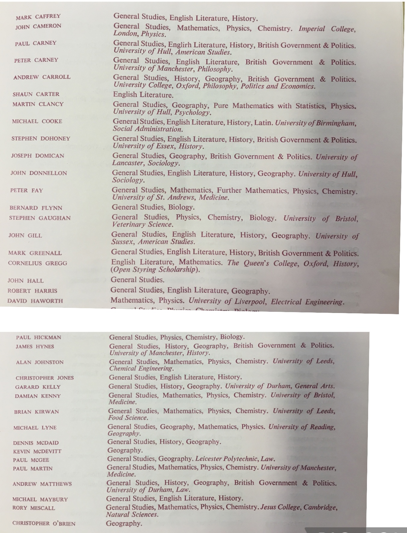 (Fr Arthur; Foley; Moore; Brennan; Taylor)