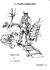Our production has eleven characters. Stanhope, the young Captain, who resorts to whisky in order to cope with pressures of a long spell of duty at the front. Osborne, a schoolmaster, is an older, avuncular character, who spreads a calming influence. The obese Trotter and the frightened Hibbert appear at first to be stereotypes but reveal unexpected qualities. Raleigh is a newcomer, straight from Stanhope's public school full of enthusiasm for his hero and for the war. The Colonel is an unemotional, awkward man trying to do his distasteful job. Hardy is the jovial Captain whom Stanhope relieves, while Mason, the cook, punctuates the action with his wry remarks. The cast also includes an immensely dependable Sergeant-Major, and two young privates, one from each side, representative of the bemused millions caught up in the larger conflict which this play attempts to mirror. (Christopher Start)