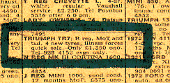 a yellow TR7 (mysteriously offered for sale)